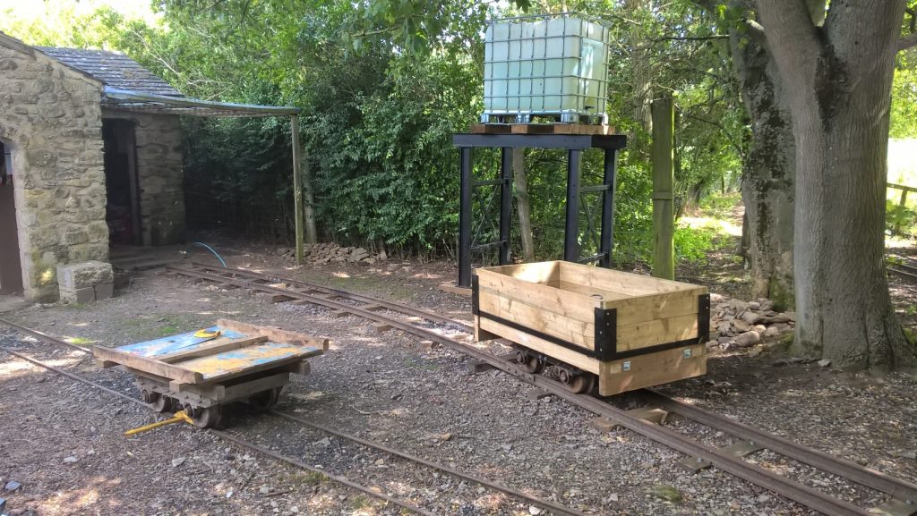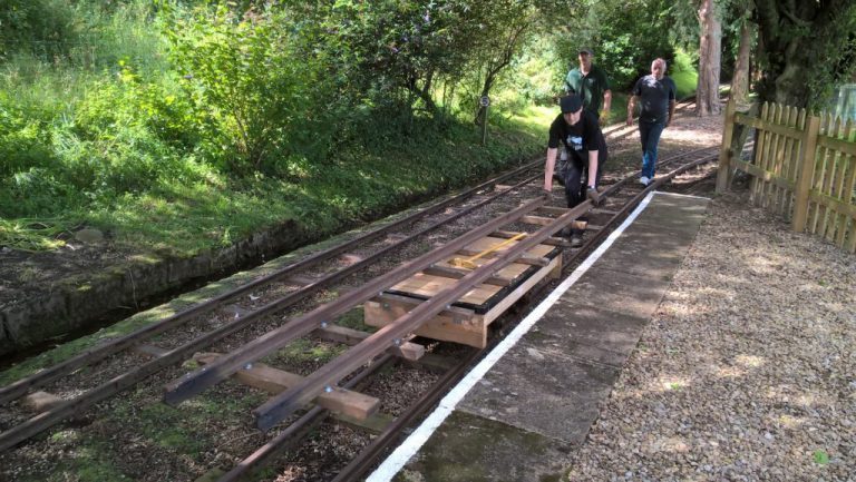 A new works wagon inspired by the Heywood prototype was on display in the station. It was built around a dismantled former Whorlton Lido Railway coach, very similar to how our first works wagon came to into being, and was tested straightaway by moving a section of track.