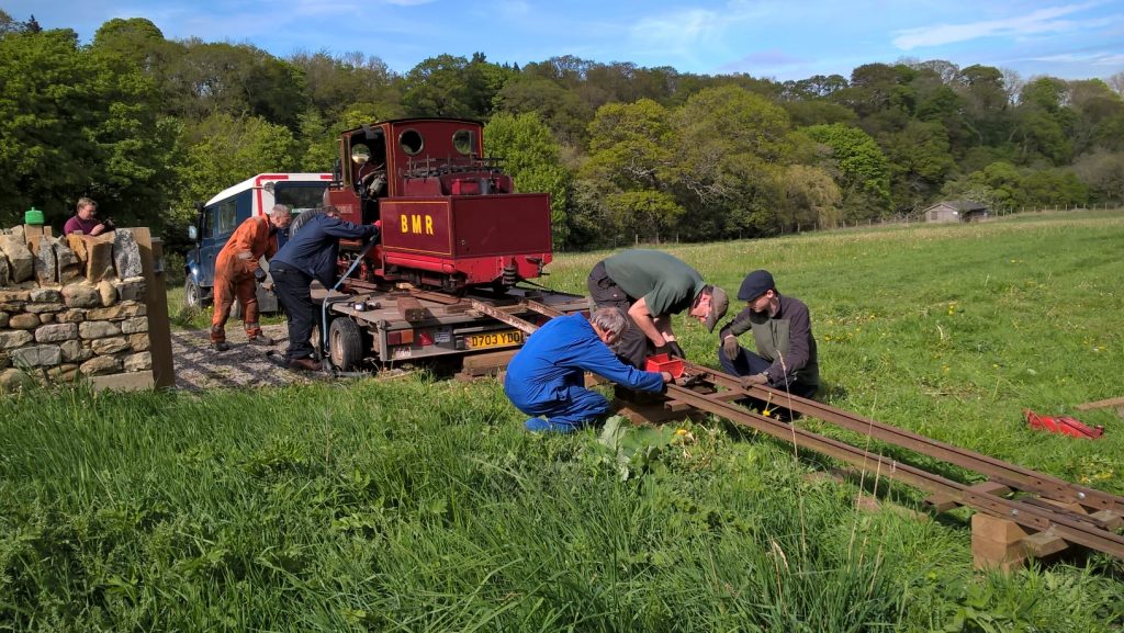 Steam engines return to Thorpe this May, with Mountaineer on loan from a private railway. The loco is an 0-4-0 tender loco and capable of hauling passengers all day. Here are some pics of it been collected, delivered, and gauge trials to make sure she fits our railway and there are no issues that we need to address.